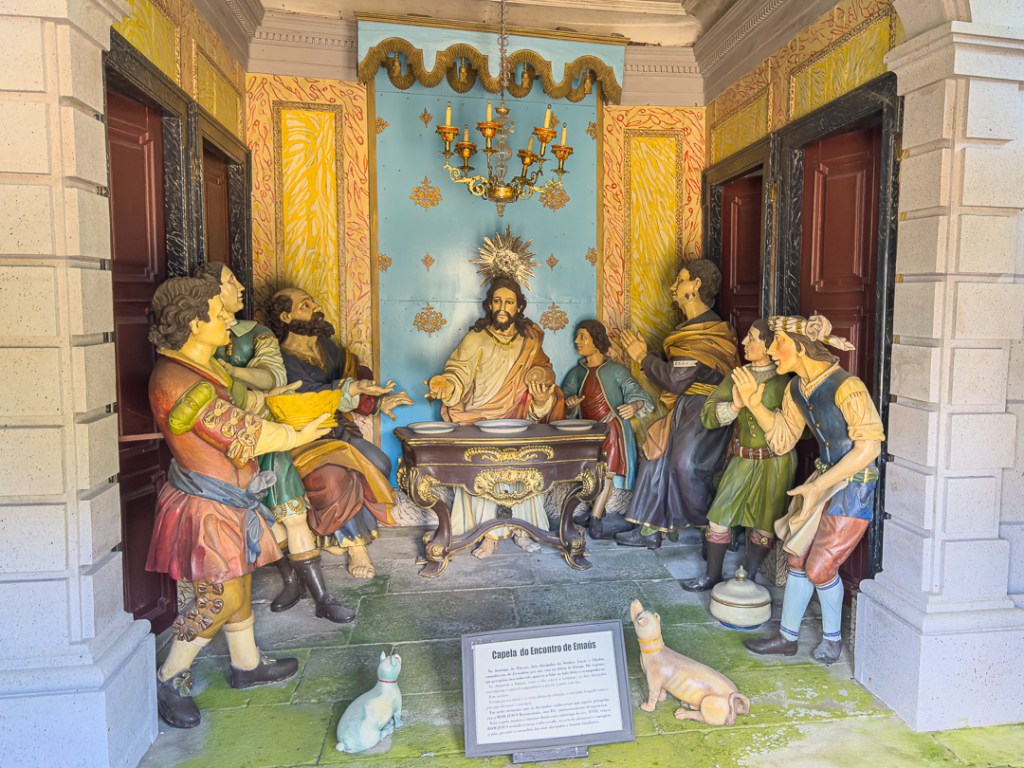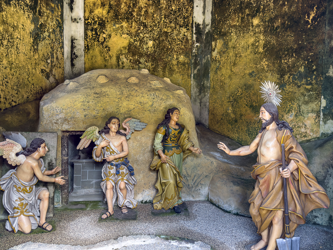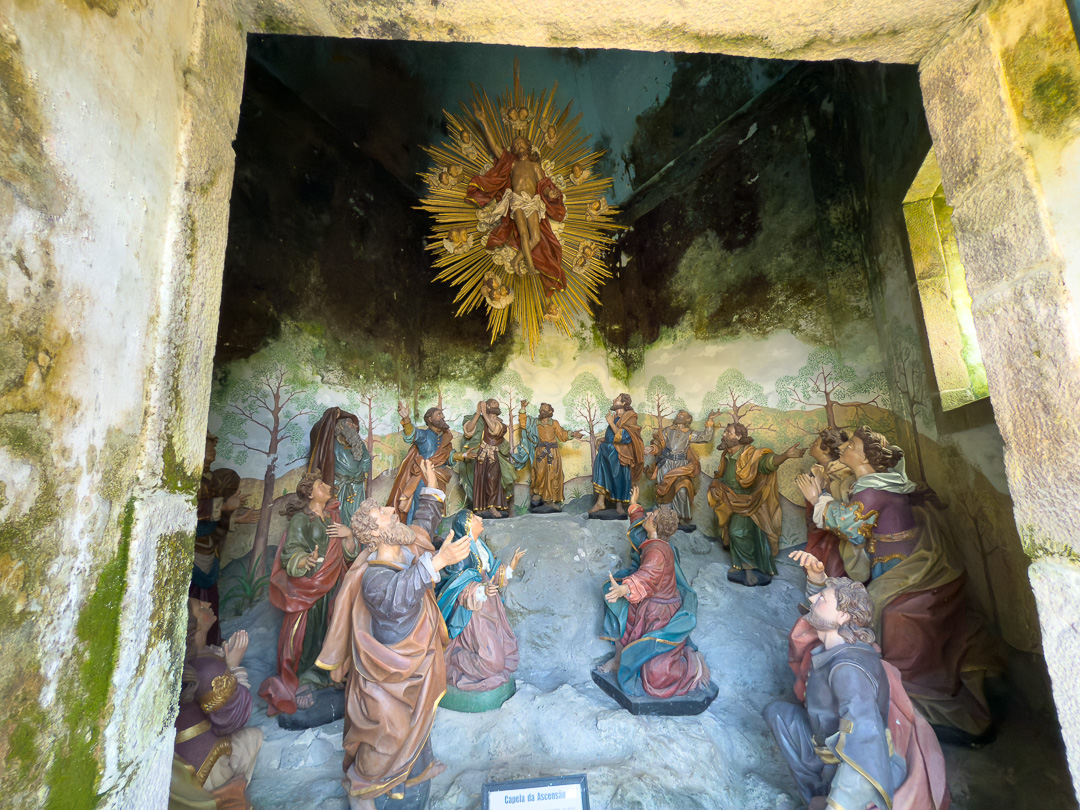 Around the site, there are many of these shrines. When you look through the window, there is a tableau depicting scenes from the Christ Passion.