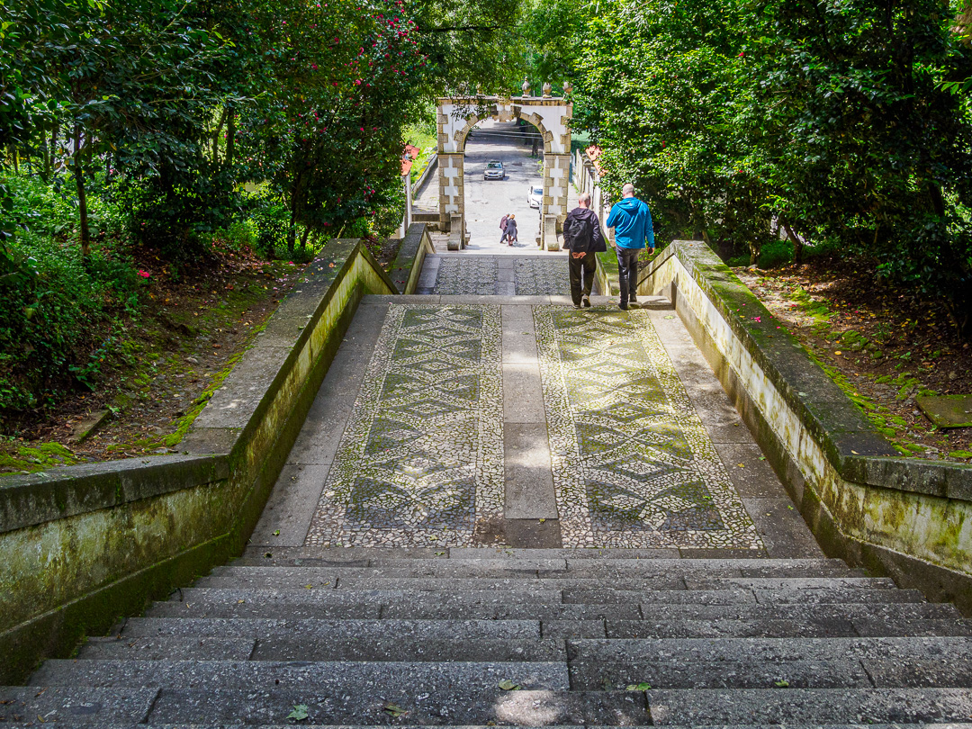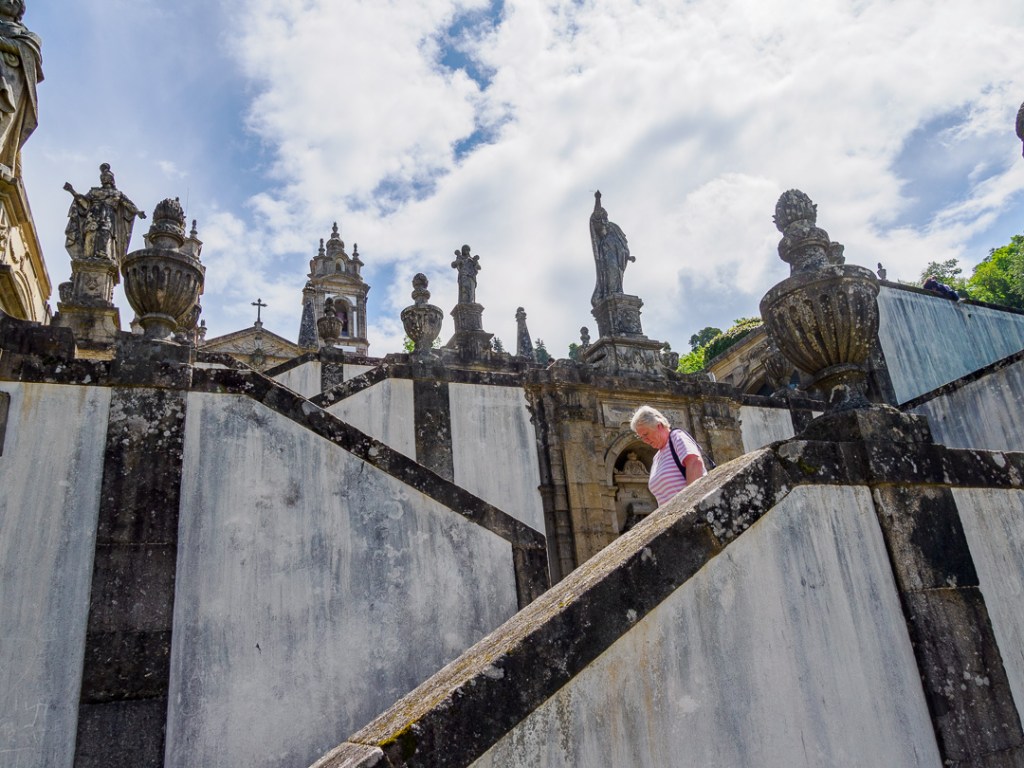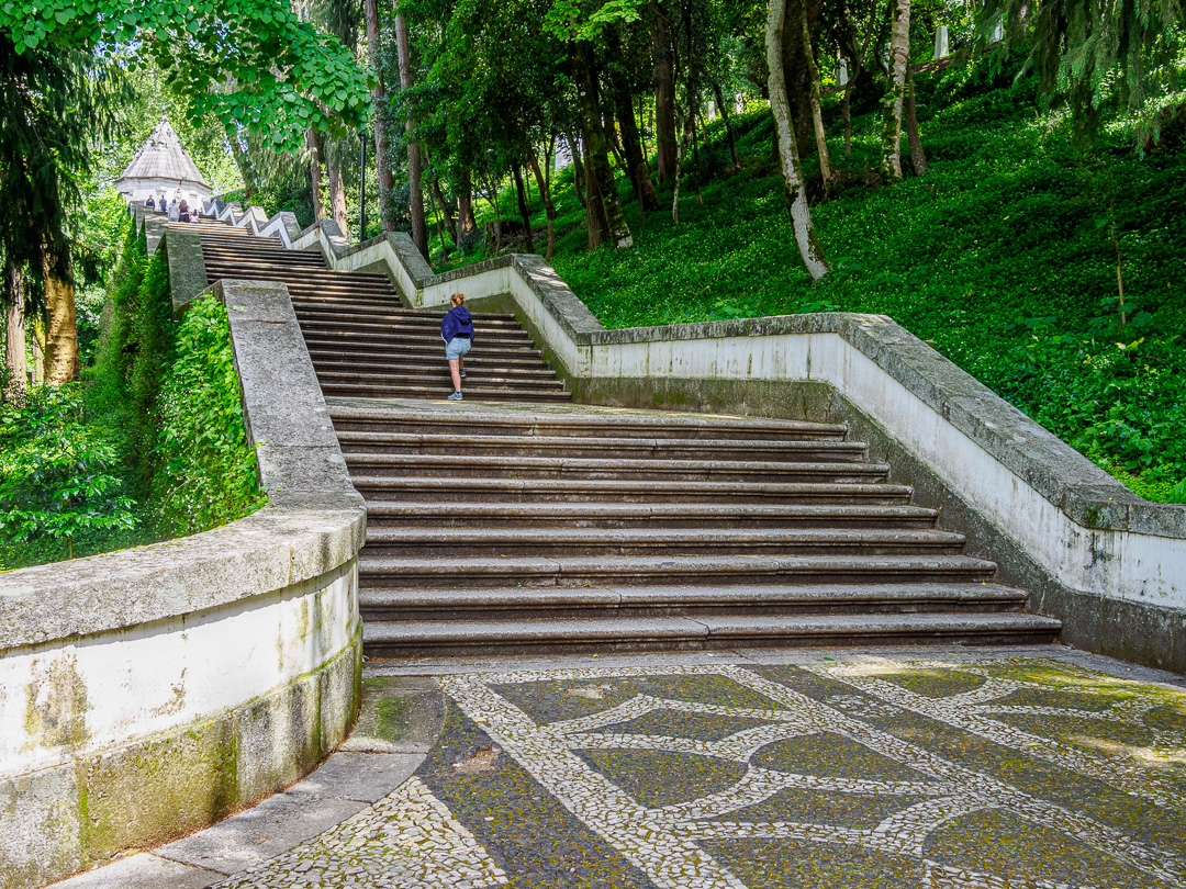 The site features a huge staircase, which pilgrims climb to a church at the top. There is also a funicular railway, so guess which we chose: