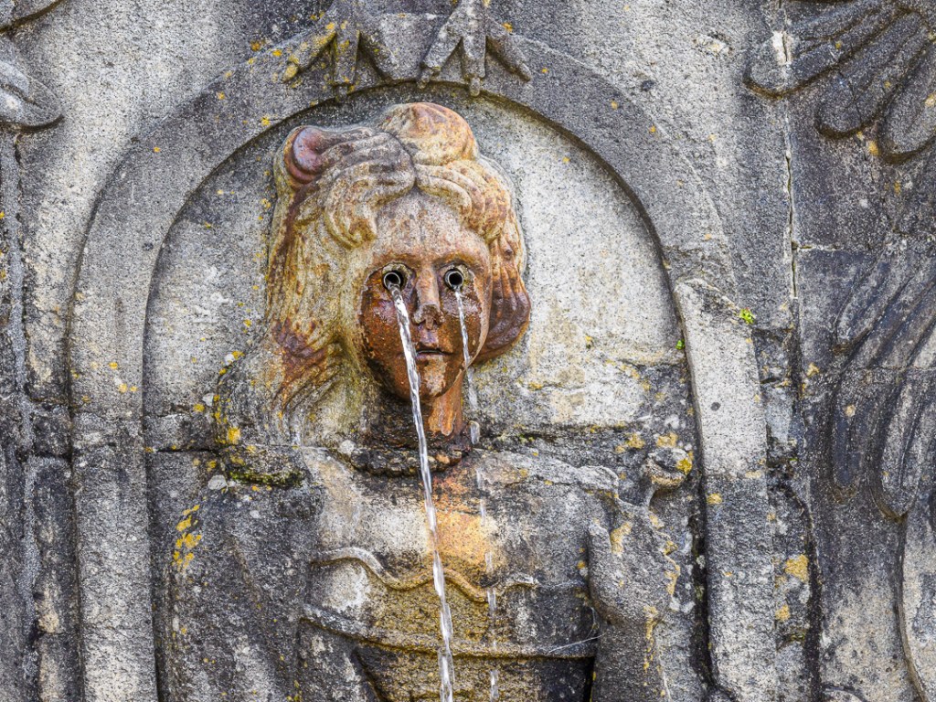 At each level as you descend, there is a fountain. Some of them are quite grotesque: