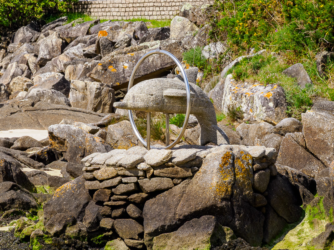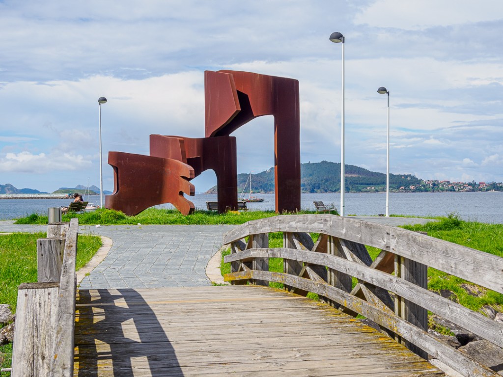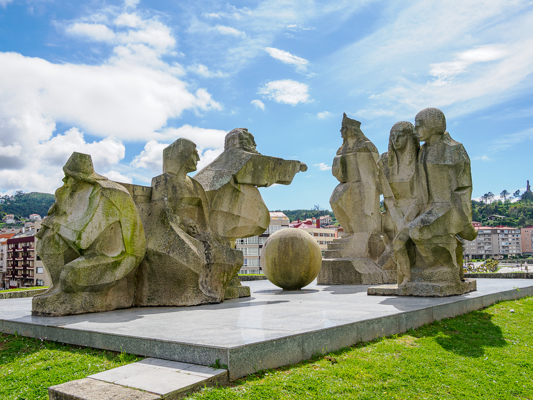 Our park-up for the night is a little north of Baiona, with an lovely view over the beach and a sculpture of a whale: