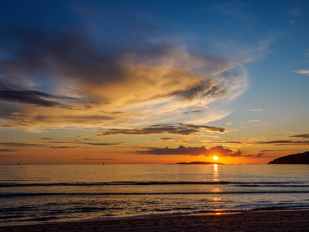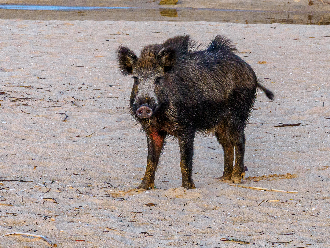After a really pleasant day with fine weather, we decided to finish with a stroll along the beach to watch the sunset. What we did not expect was a close encounter with a wild boar!