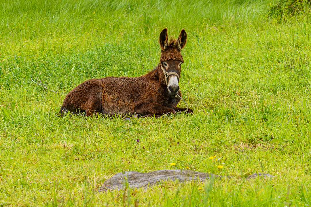 We parked-up in what appears to be a new motorhome parking area with free services. Nearby, there are some donkeys and ponies, which I felt sorry for as they were all tethered, rather than being able to mix with each other. The field was not enclosed.