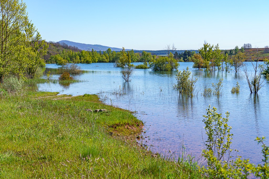On our way to La Población, we stopped alongside a reservoir and looked back towards the Picos mountains, where we had been previously.
