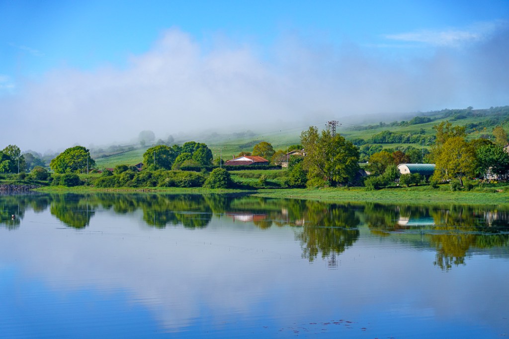 We spent a really peaceful night and in the morning, there was a heavy mist which reminded us that we were still around 1,000 metres above sea level. There was not a breath of wind. As it cleared, there were some nice reflections: