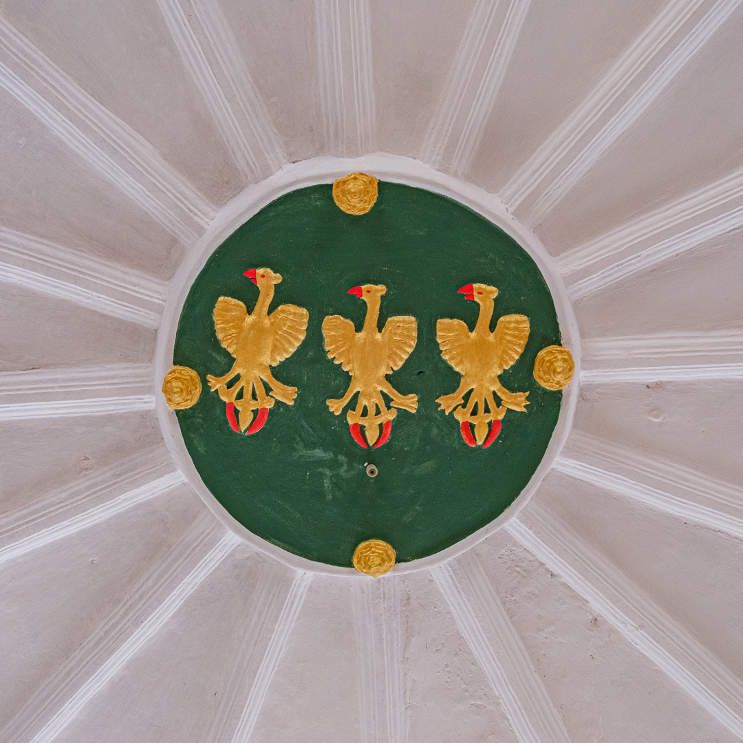 The builder, Robert Wynn was obviously proud of his heritage. Coats of arms are everywhere and the motif of a half-naked pregnant woman is repeated everywhere that visitors might be present: