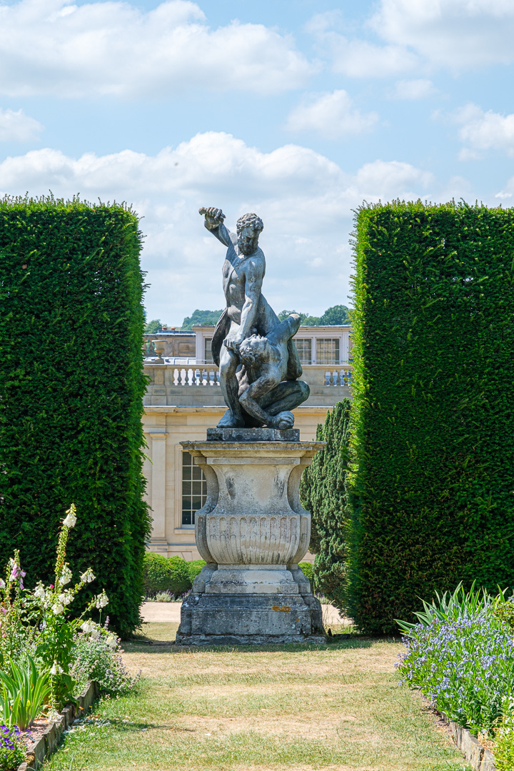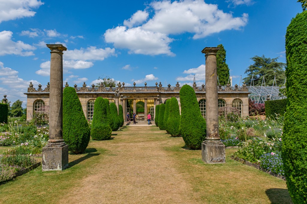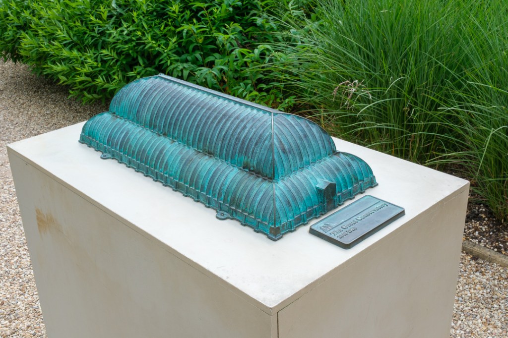 There used to be a huge glasshouse where the maze is today. You can see a model and the footprint in the stone walls of the garden in the two images below: