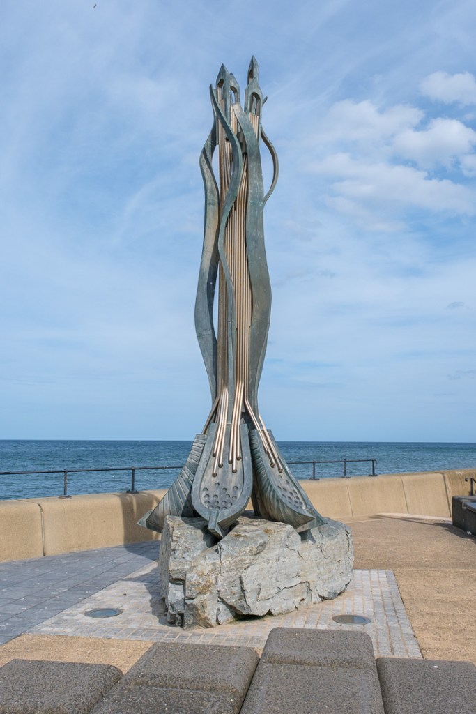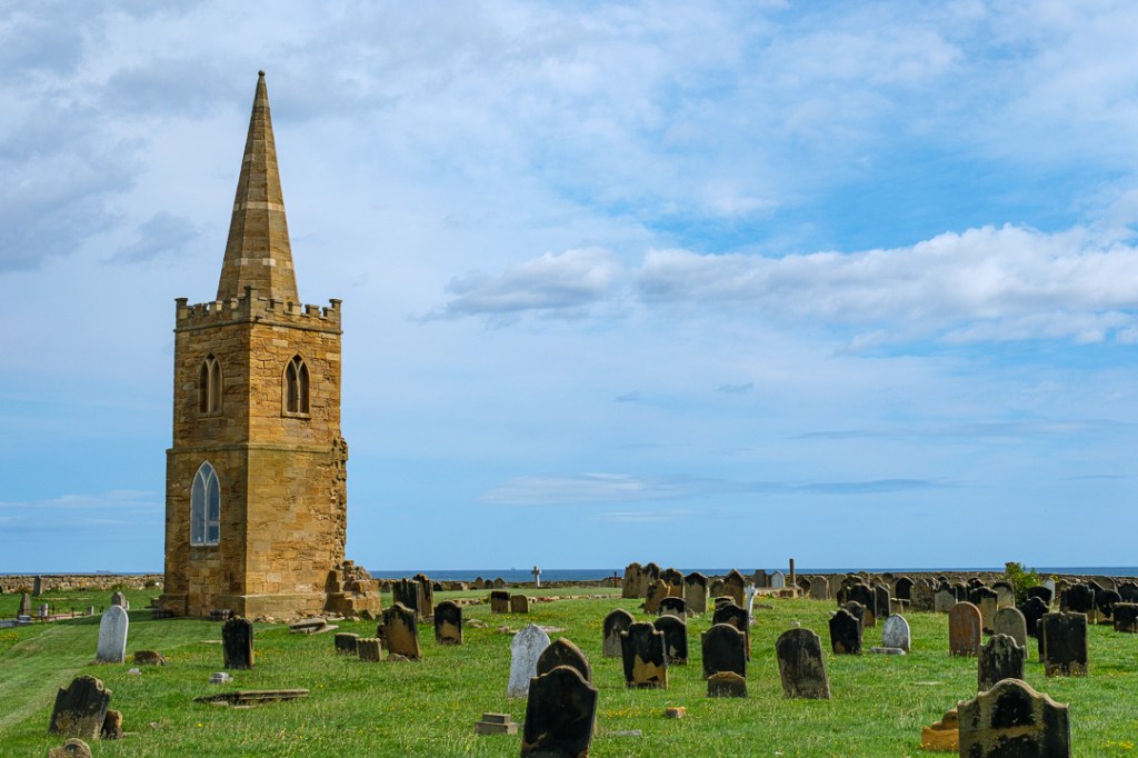 On the Friday, we cycled south, along the coast, to Saltburn-by-the-Sea, via Marske. A route which took us via narrow alleyways past allotments and holiday homes. You could even find a “tomb with a view”: