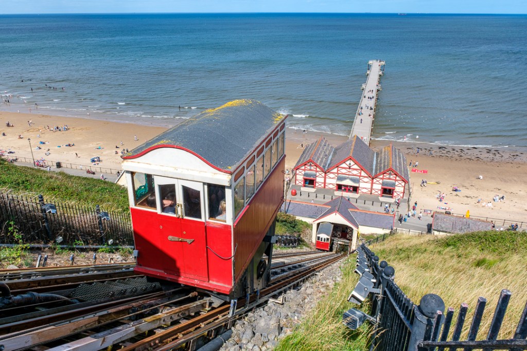Perched atop a cliff, Saltburn is a small and quite charming resort town which has a beautiful beach (effectively the same beach as at Redcar), and a pier. There is also a funicular railway which leads directly to the pier from the town above.