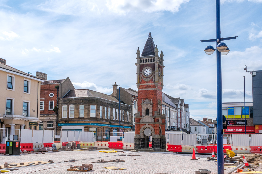 Much of the shopping area is being pedestrianised, including the area around the town clock.