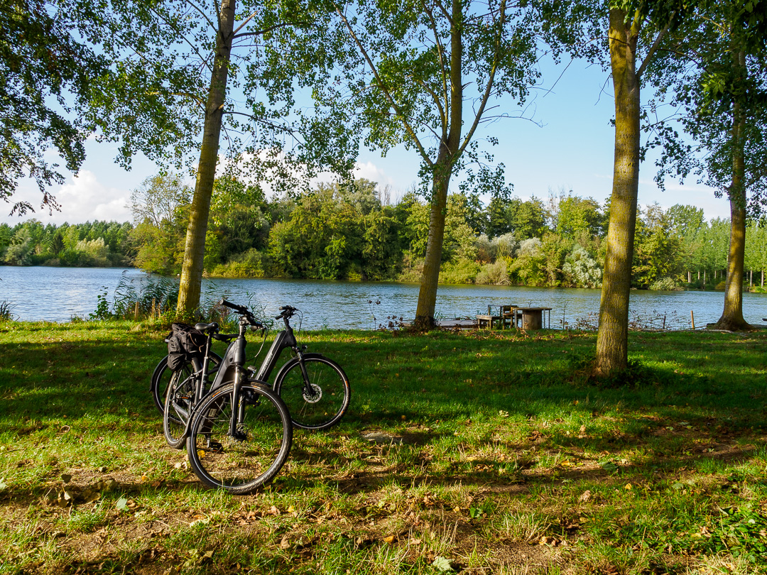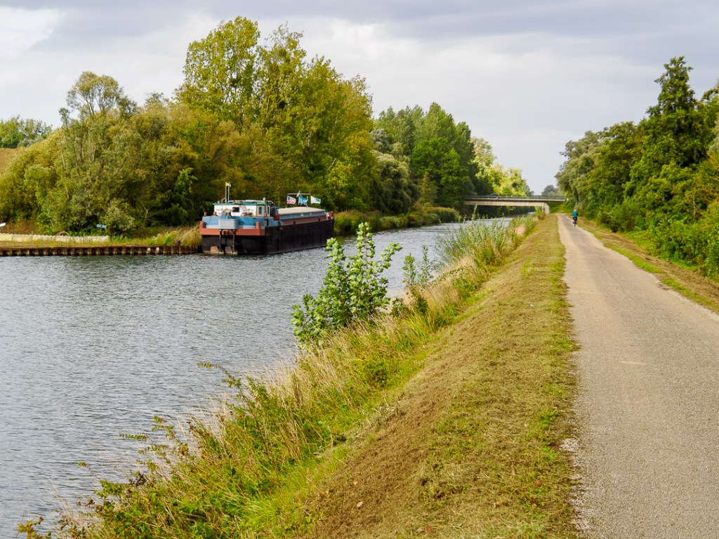After lunch and a short wait, it was clear that we would not be getting a space any time soon, so we moved on further south, to La Fère, to stay on the municipal campsite. La Fère is a commune in the department of Aisne in Hauts-de-France in northern France. It is pleasant enough, but perhaps unremarkable. We were again close to a canal, so took our bikes out for a spin.
