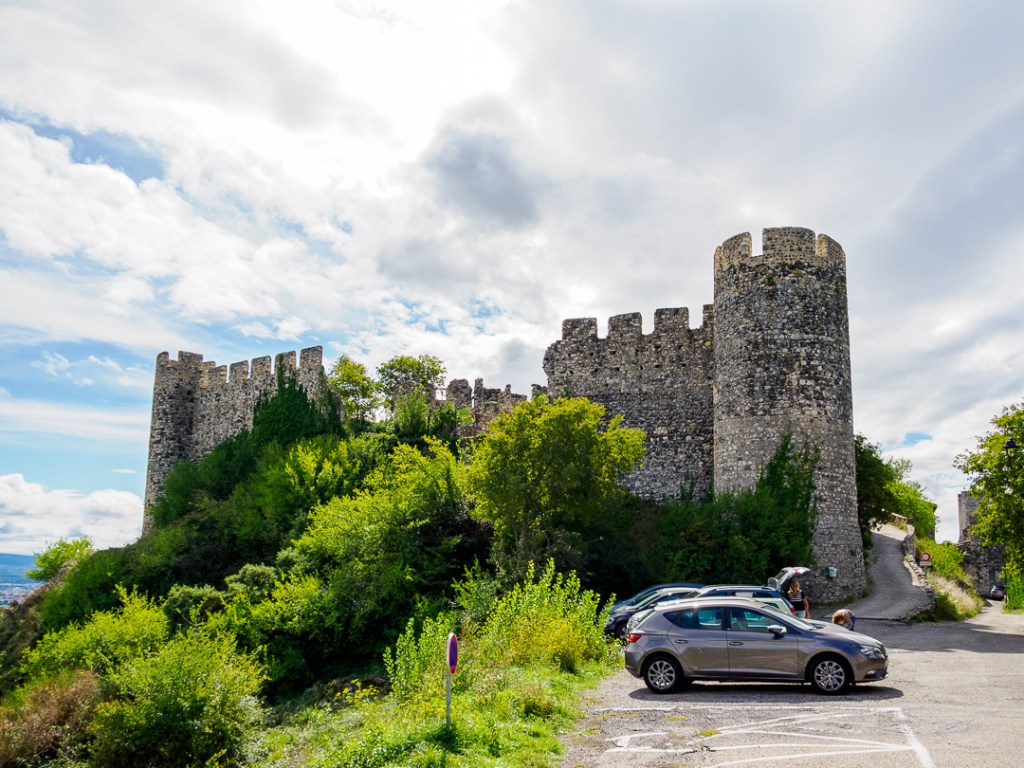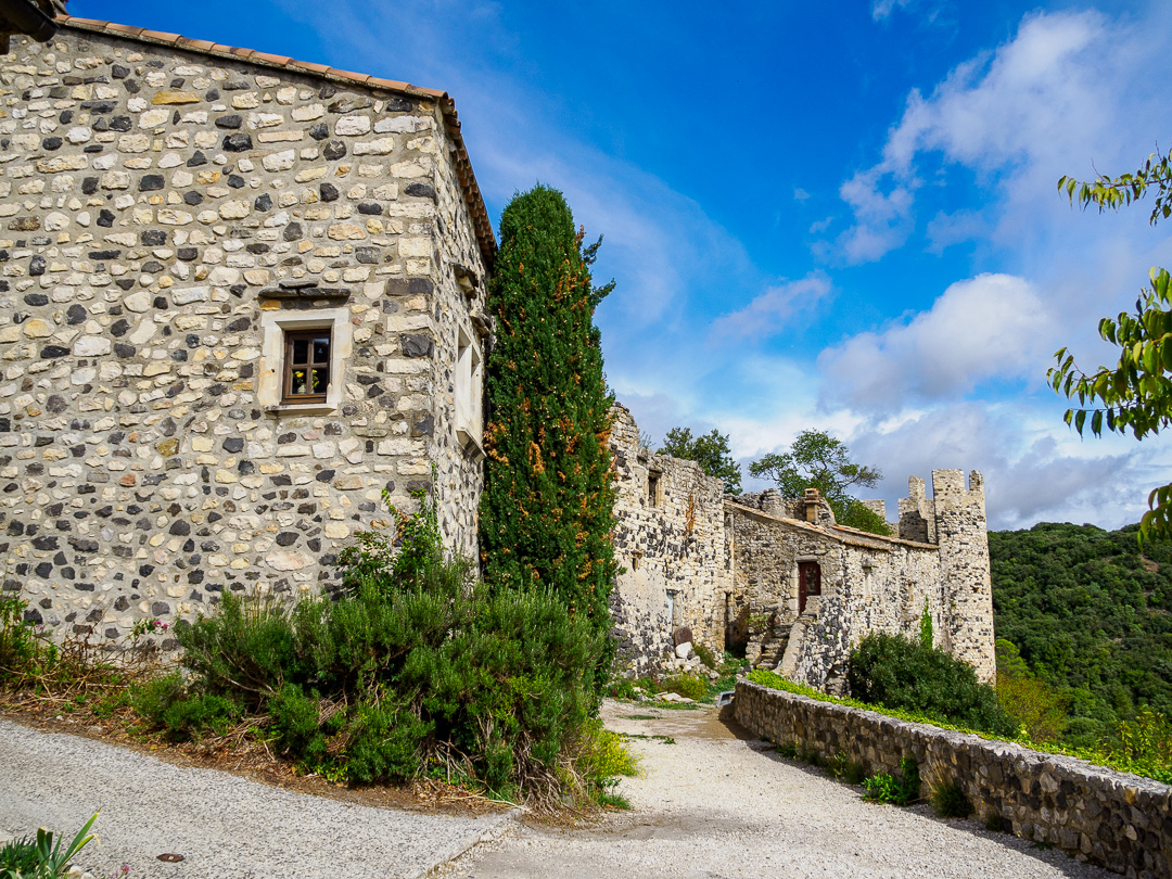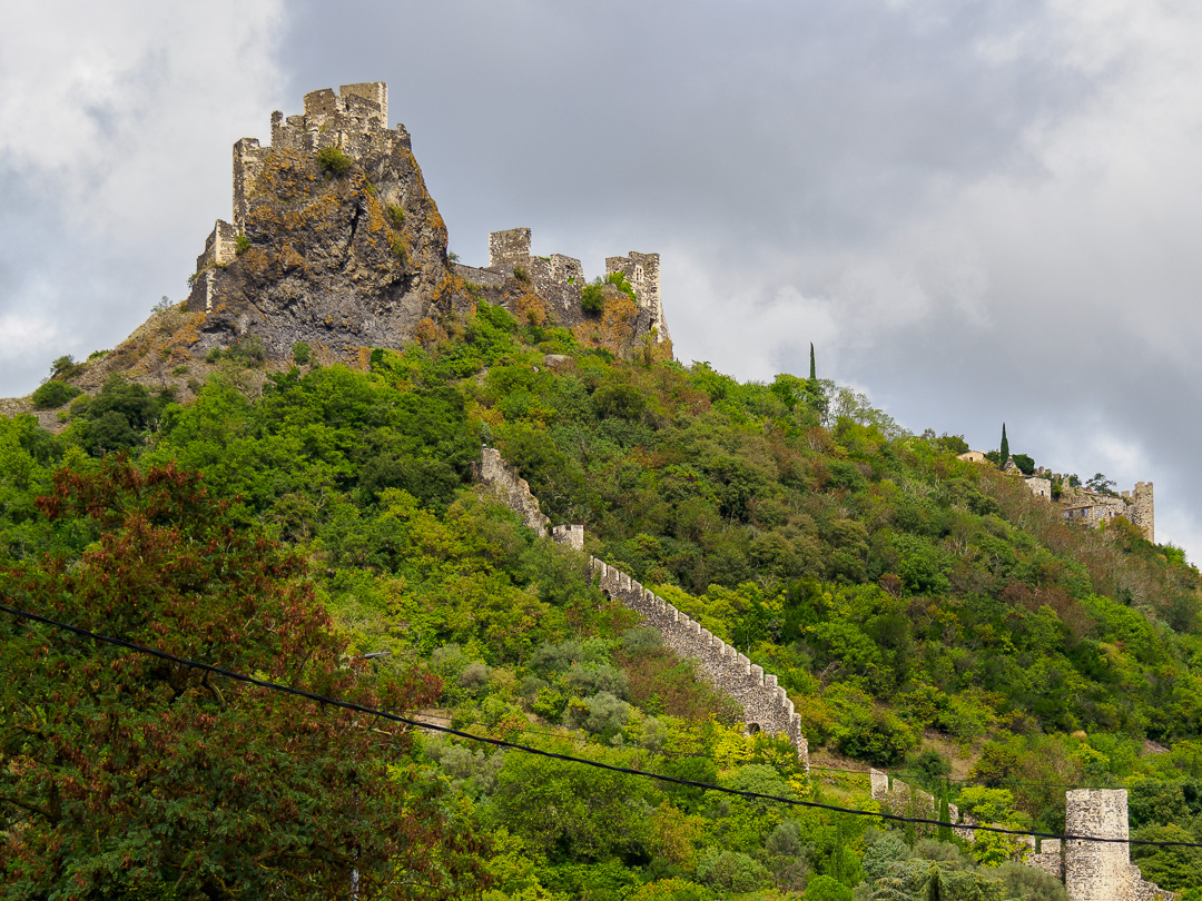 As it seemed quite a climb, we decided to drive up to the car park, about 100 metres short of the chateau. But what a climb! Problematic enough in a car, but in a motorhome definitely not to be recommended. Narrow, steep roads, with sparse passing places, hairpin bends, lots of overhanging vegetation and two narrow arched gateways. At one point I had to reverse uphill for 50 metres to reach a passing place and allow an oncoming car through. Lesson learned!
