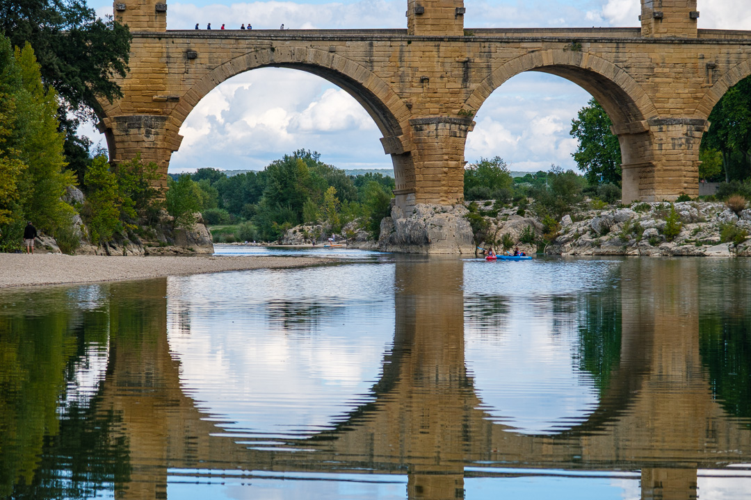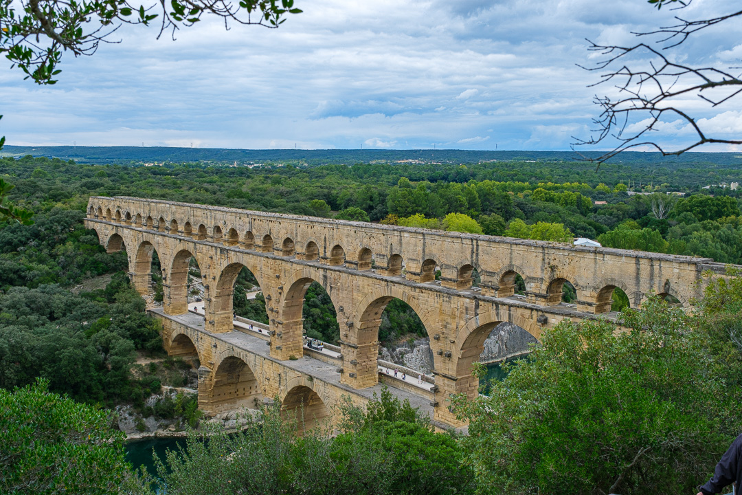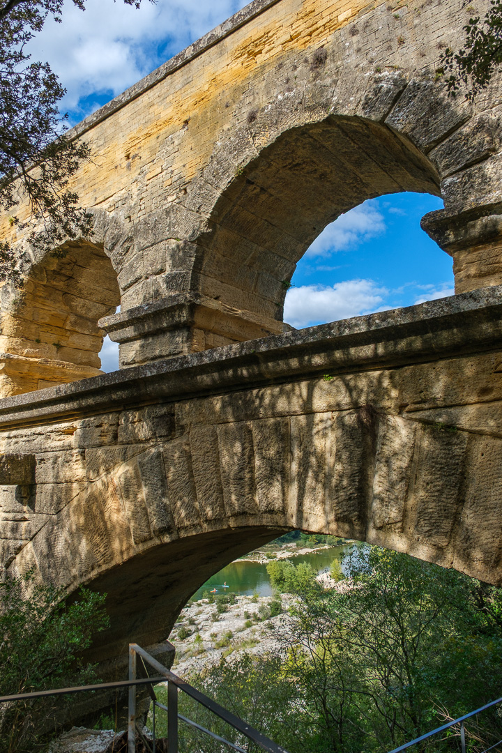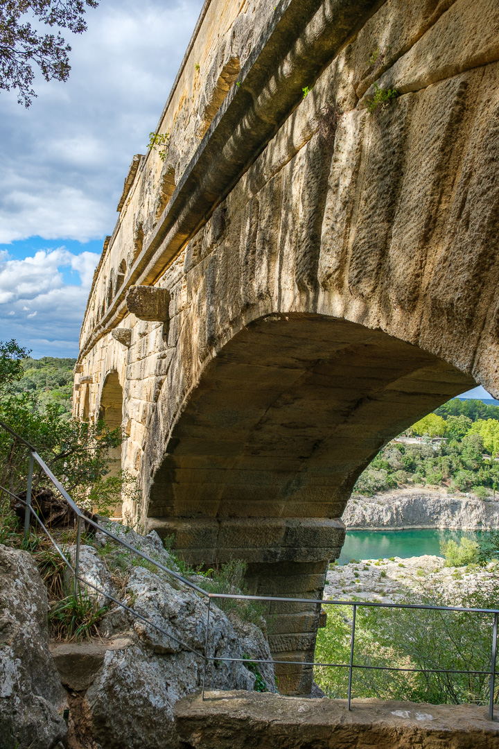 The bridge is huge. I mean really huge, especially considering how long ago it was built (40-60 AD). It was built to carry water for 50 Km to the nearby Roman colony of Nemausus (present day Nimes). It is 48.8 metres high and at peak, carried 11 million gallons of water a day.