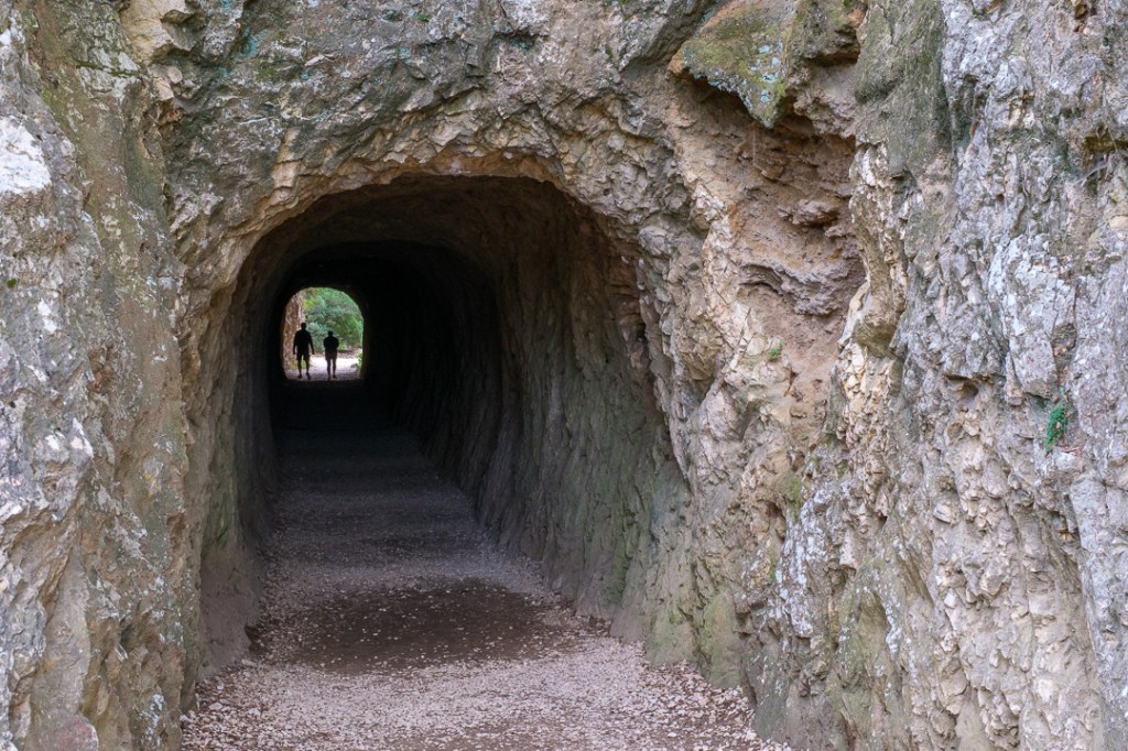We climbed up to the highest level alongside the bridge, where we could see the massive stones used in its construction, even at the top tier. The channel is also clear, as is the tunnel which continues on from the end of the bridge to continue the water’s path.