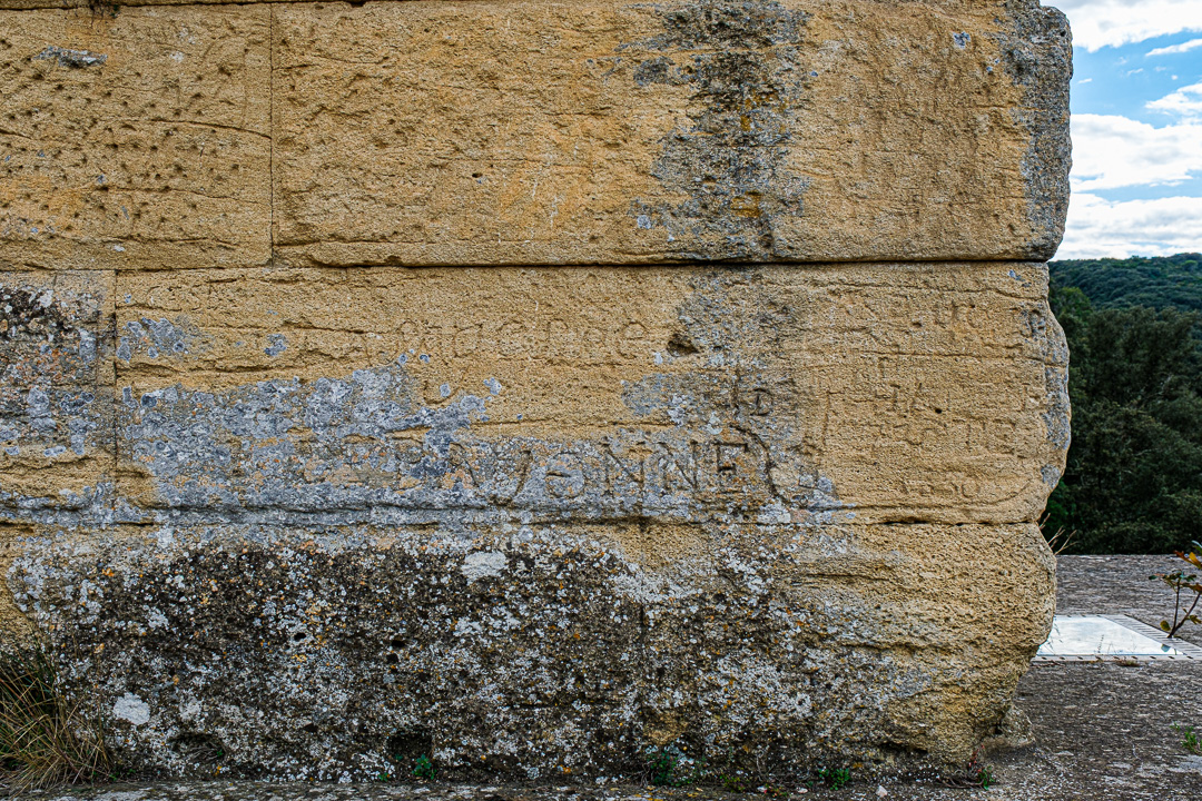 Like many stone monuments, the bridge has suffered at the hands of vandals. I think that the graffiti carved into the stone of the piers is quite old, however.