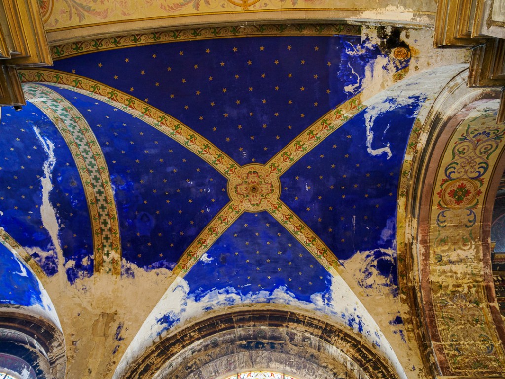 Escaping the high-activity hubbub we had a quick look inside the church, which seemed to be undergoing some restoration: