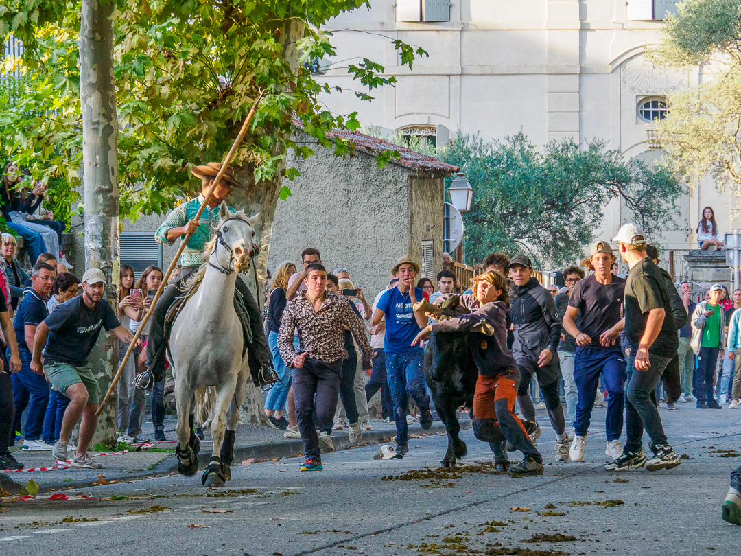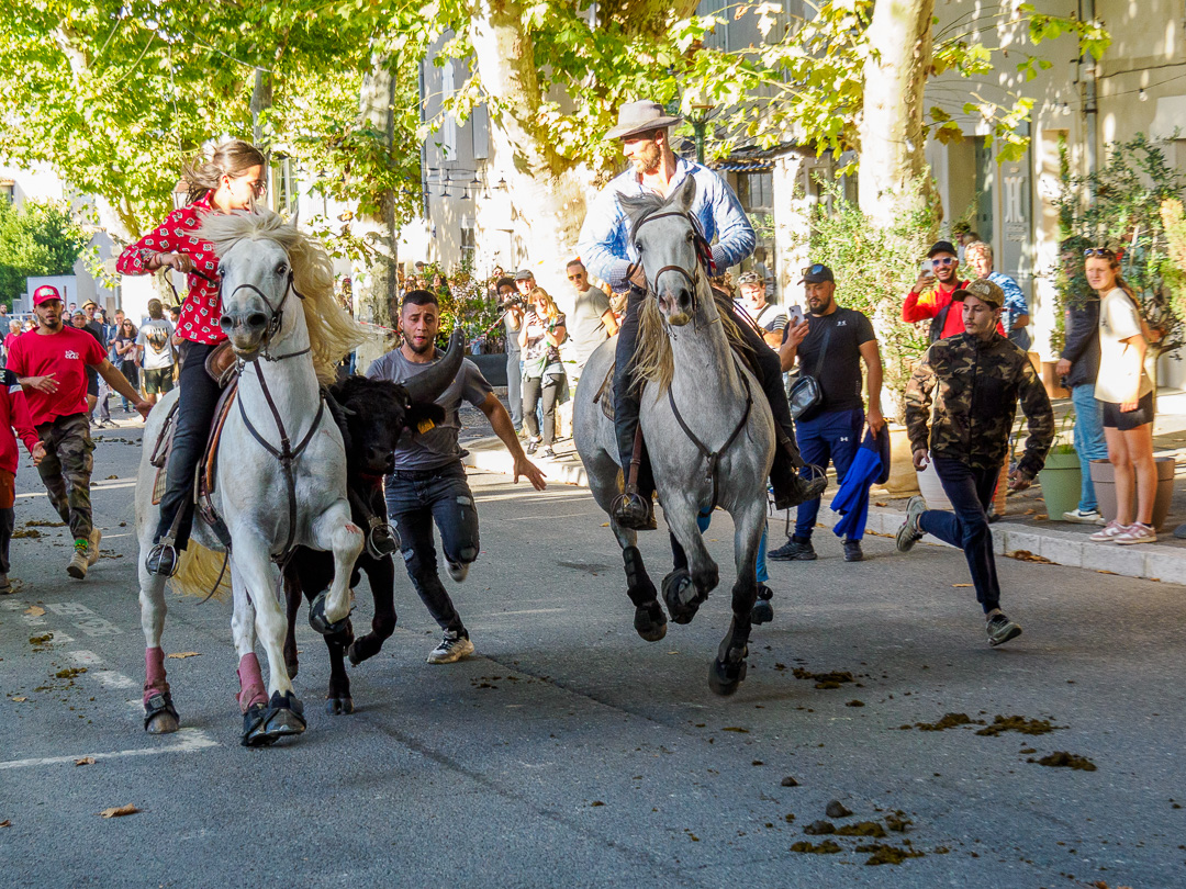 Unknown to us when we arrived, the town was about to hold a feria, or bullfight. Apparently French bullfights are not normally brutal affairs leading to the death of the bull, but the participants compete to retrieve trophies from the horns of the bull in an arena. We did not attend this event, however.