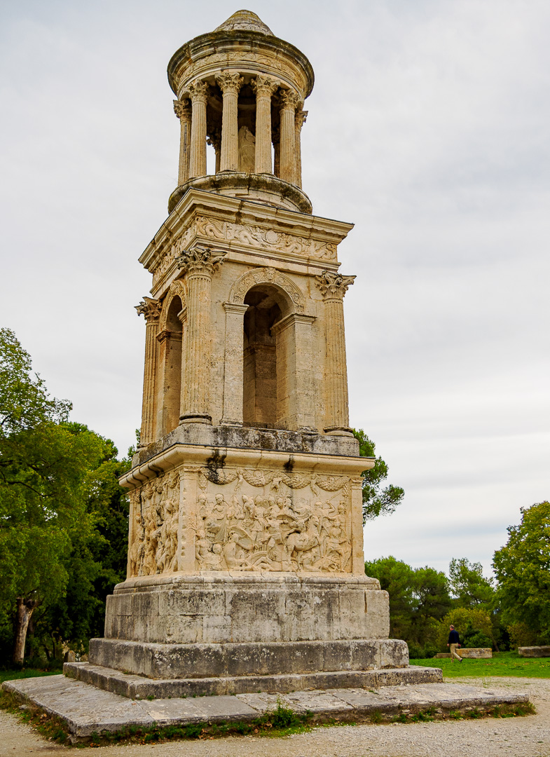 On the far side of the road from the monastery, are these two Roman structures, which are synonymous with the town. They relate to the long road built across Gaul by the Romans just after they conquered the territory: