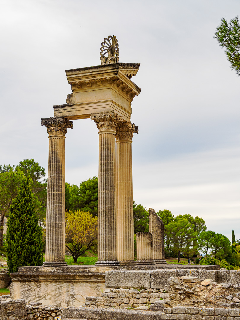 Right next door to the Monastery, is the huge archaeological site of Glanum, which was a Roman town, complete with main street, temples, baths, forum, market place, court and many, (what must have been impressive), dwellings.