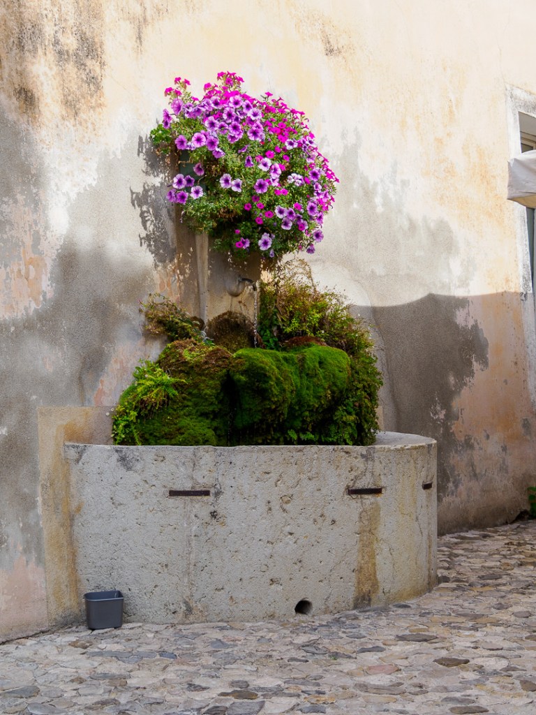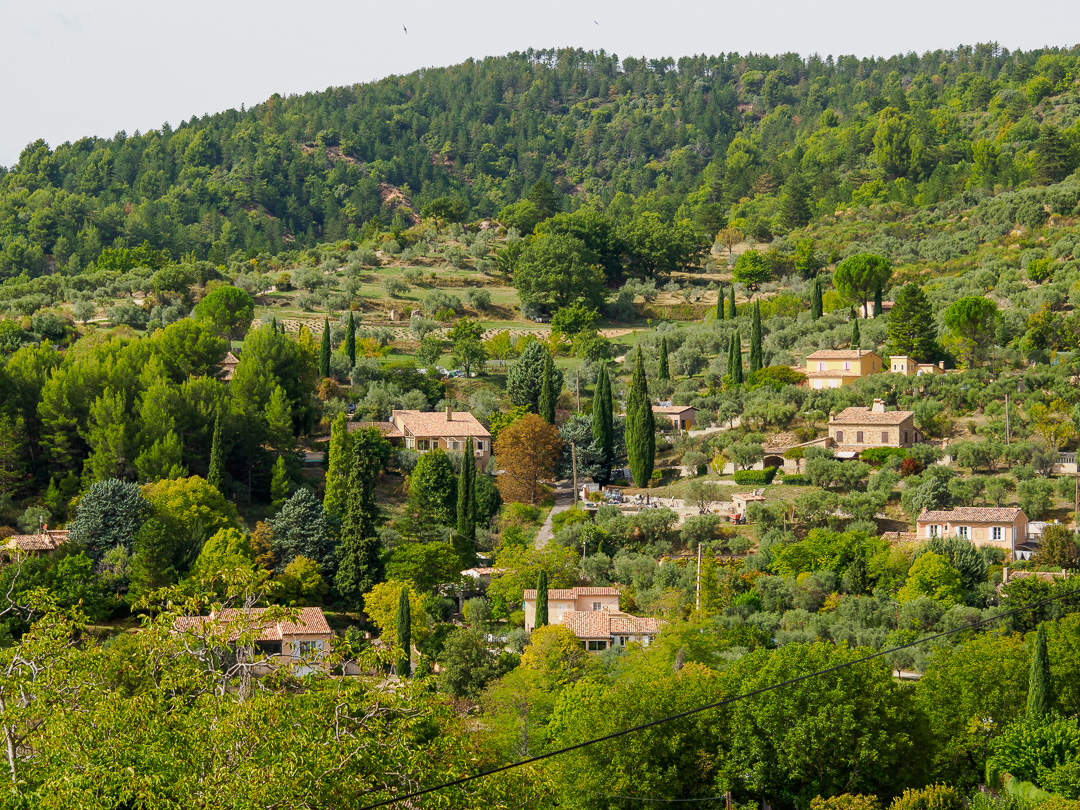 The village sits right into a fold in the hills, through which there is a good flow of water, which appears from a spring just above the village. This is limestone country and water has shaped the landscape in many ways, building up around channels over time.