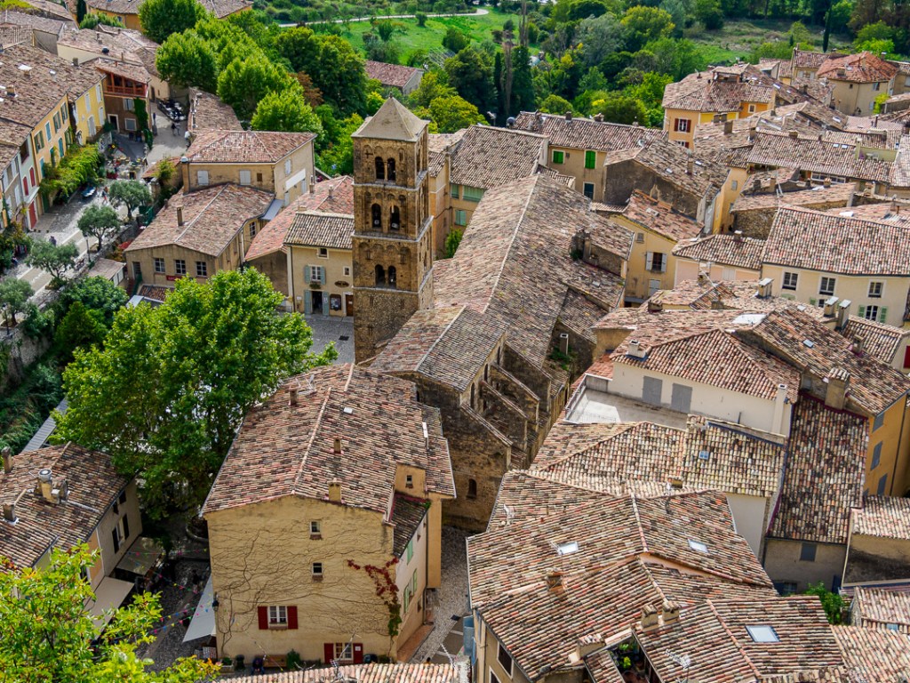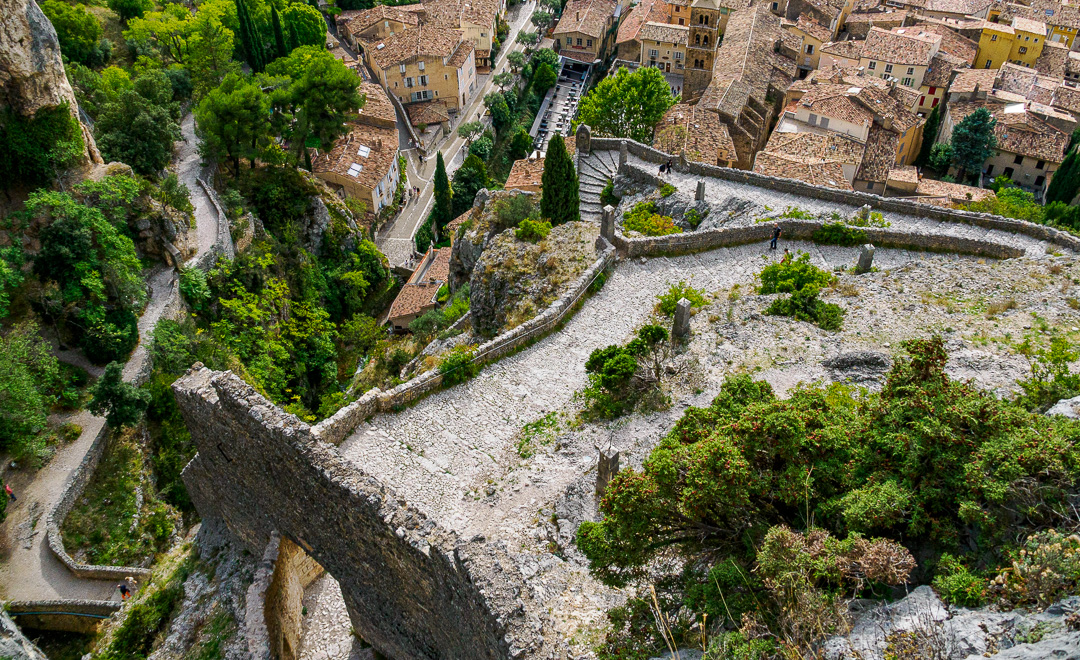 It is a good, steep climb to reach Moustiers-Sainte-Marie from the camping car park-up. When you arrive, you realise that your climbing is not finished as the whole place is on the hill.