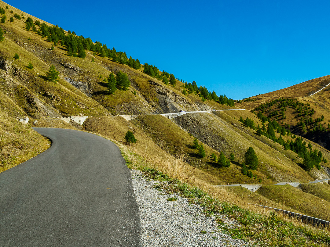 We headed for the Col d’Allos as it looked a scenic route. The road was wide and well made, until we reached the ski resort, La Foux d’Allos, then we turned right…