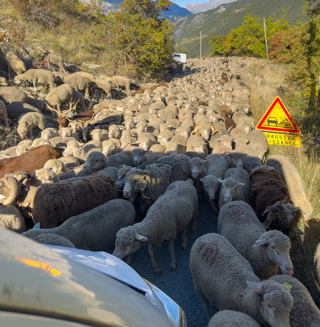 It was with some relief that we descended on the other side without much incident (again in 2nd gear), except for meeting a huge flock of sheep and goats, which took at least 15 minutes to pass us.