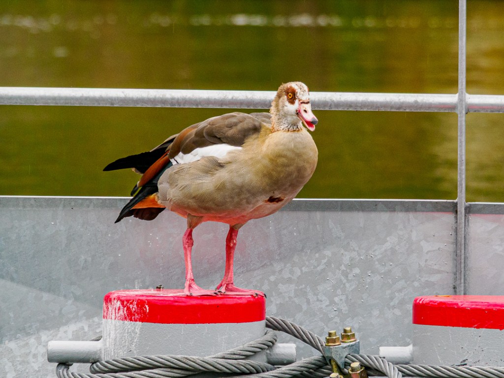 As we left, we saw a Grey Heron and an Egyptian Goose on a landing stage: