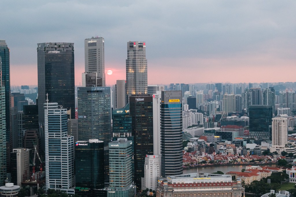 After exploring the gardens, we returned to the Marina Bay Sands Hotel and visited the viewing platform which provides some amazing views over the city: