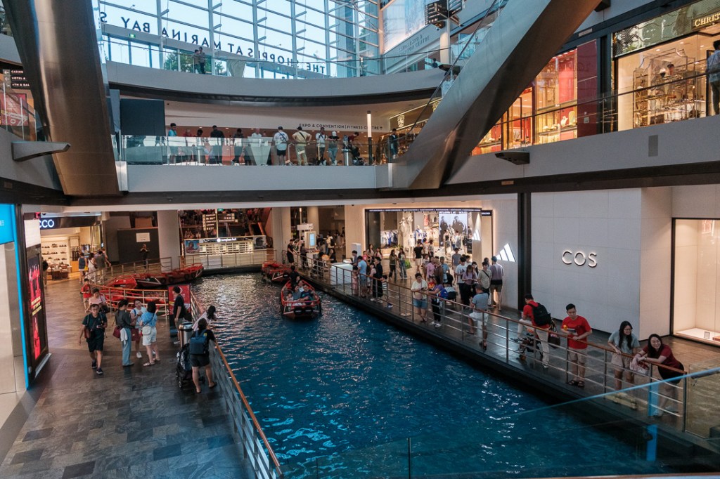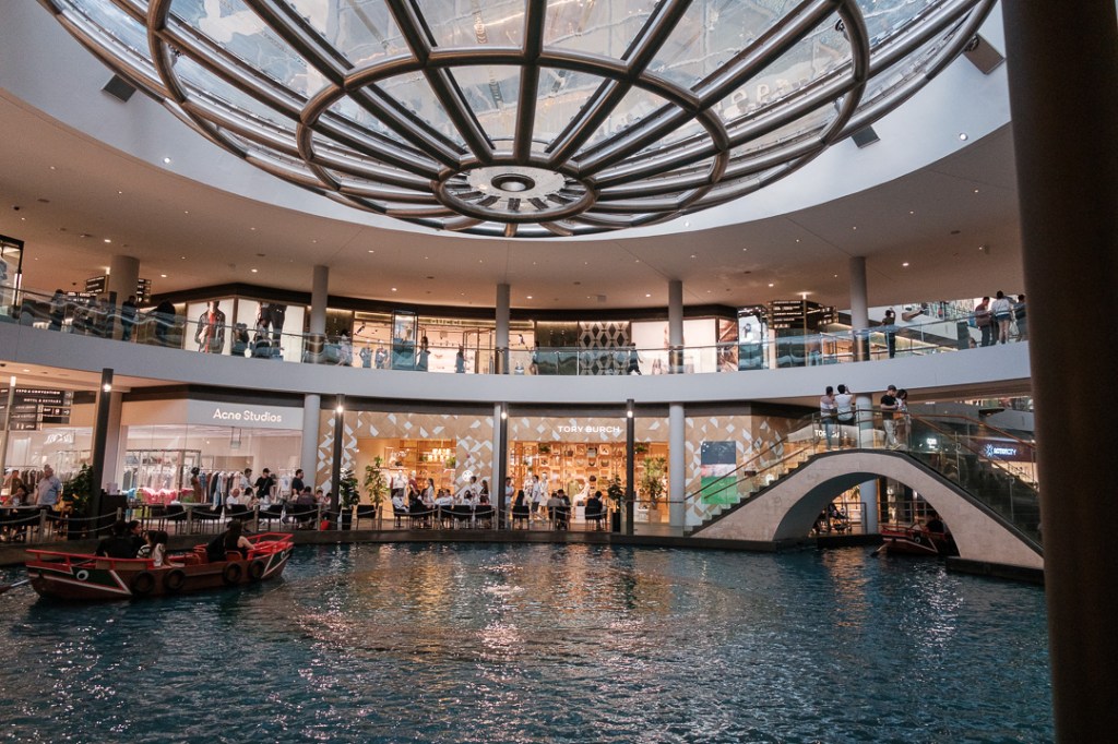 The central atrium of the mall has a huge waterfall descending through a hole in the roof: