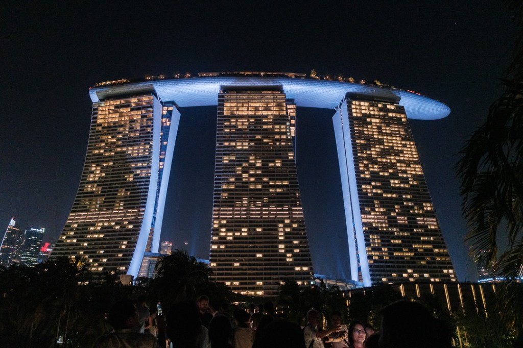 As we returned, we saw the Marina Bay Sands Hotel lit up:
