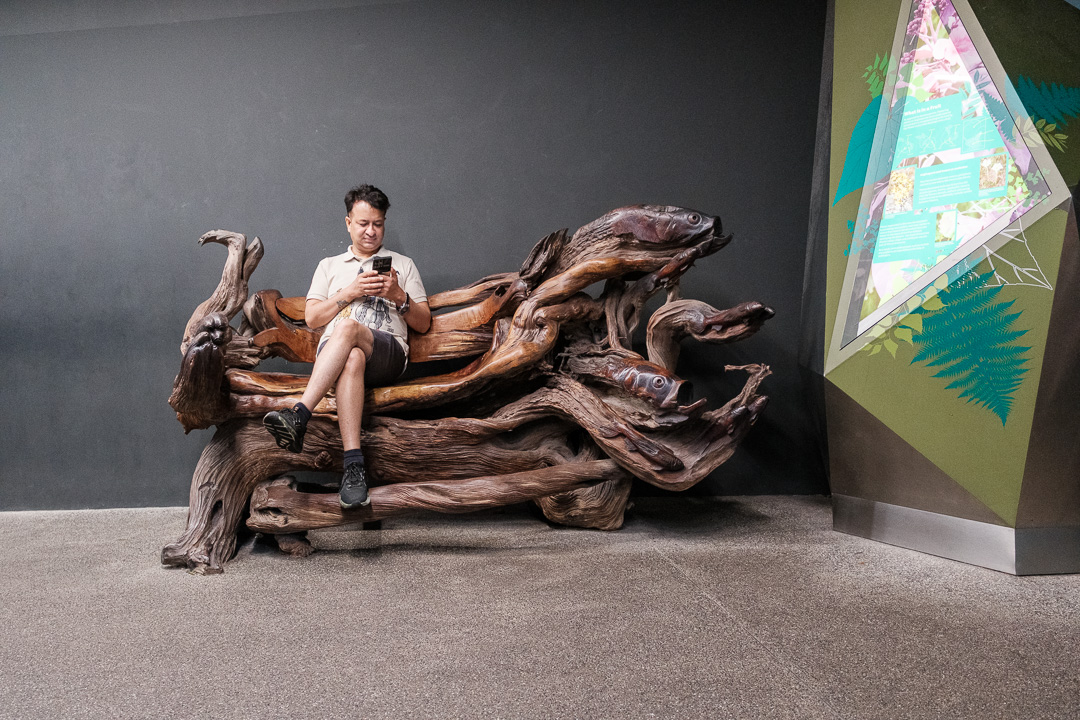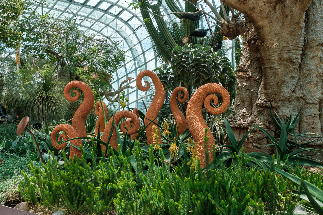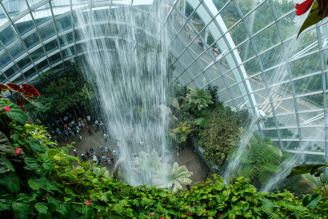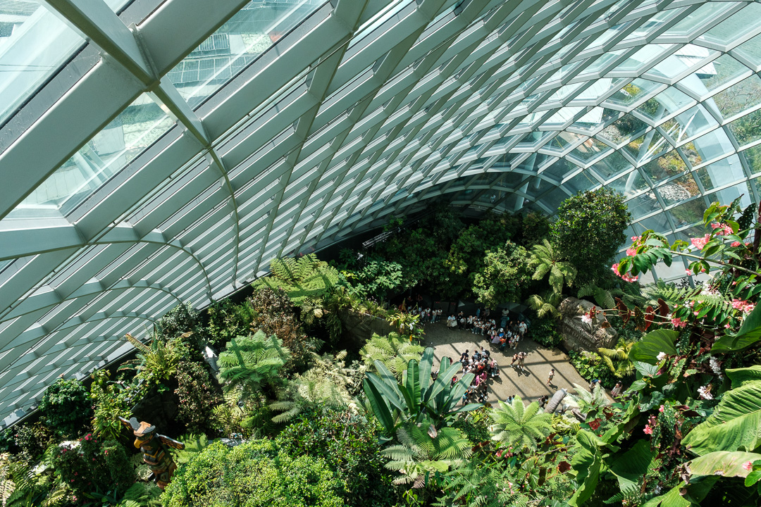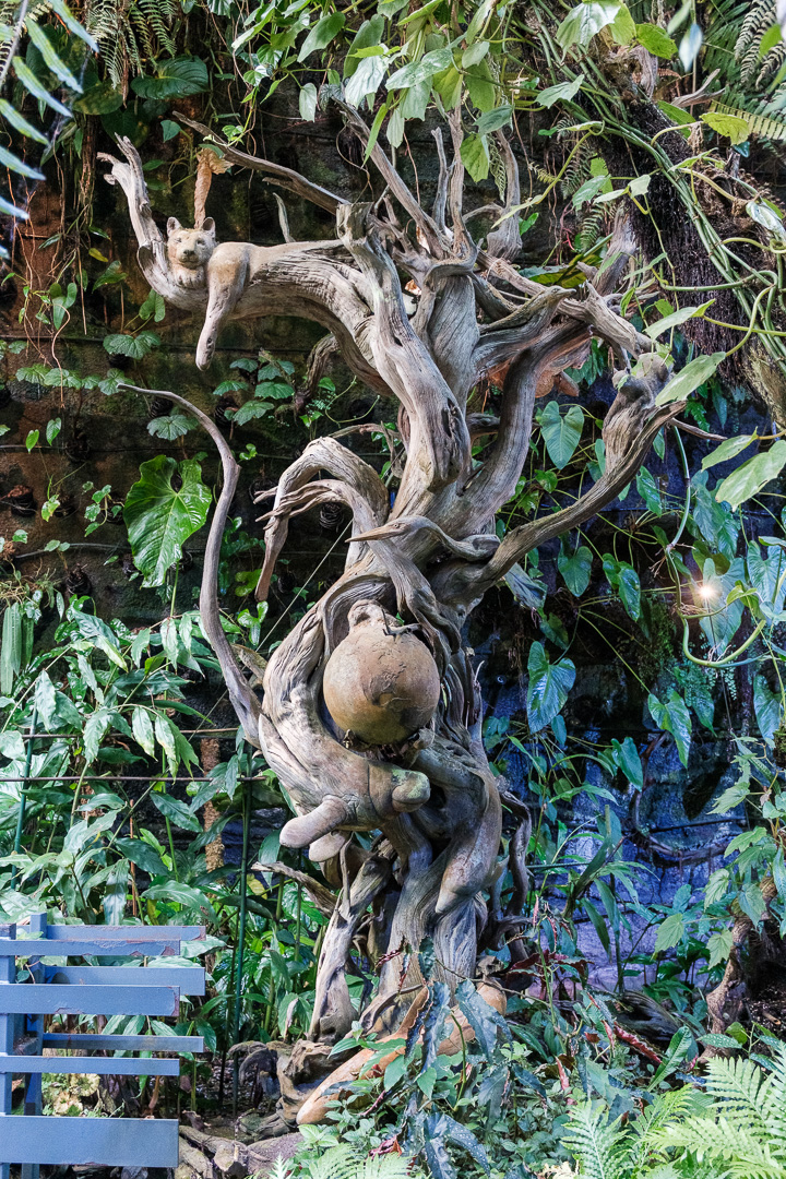 The second of the domes that we visited, The Cloud Forest, was “populated” by dinosaurs, paying homage to the film Jurassic Park. There was also an amazingly high waterfall and aerial walkways: