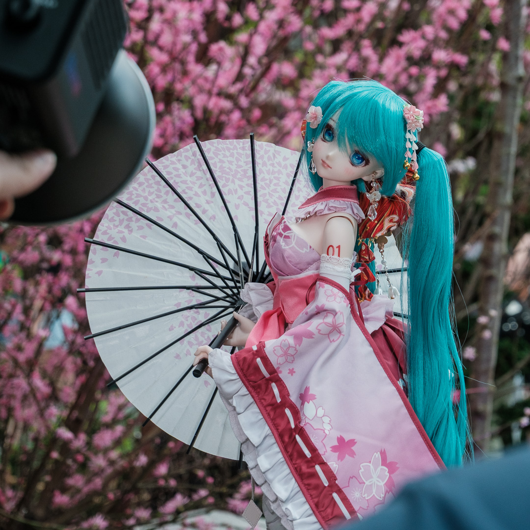 There is a beautiful Japanese garden which had many cherry trees in blossom. There were also many Japanese people.