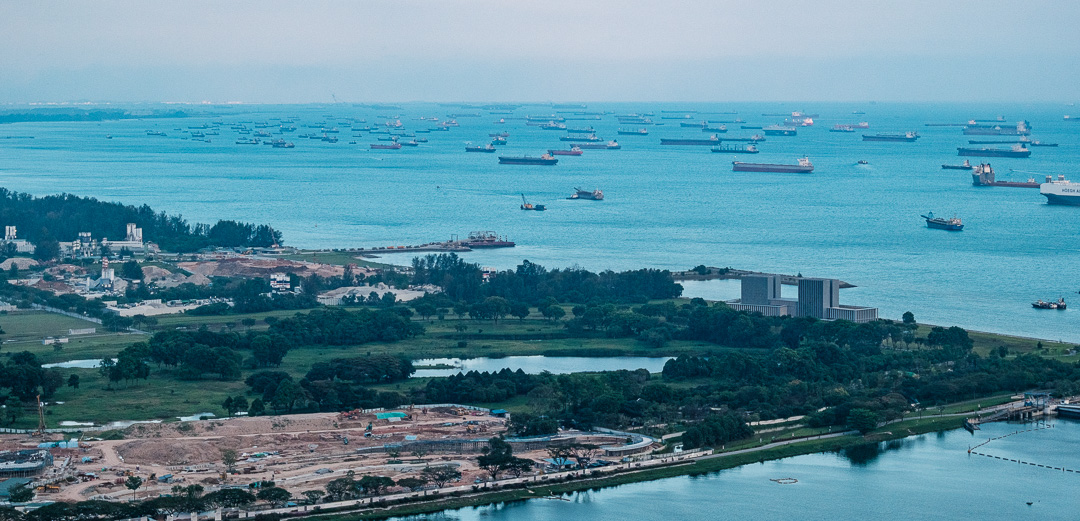 There were a huge number of ships anchored off the coast of Singapore. Clearly the war in the Middle East has caused a major disruption to sea trade.