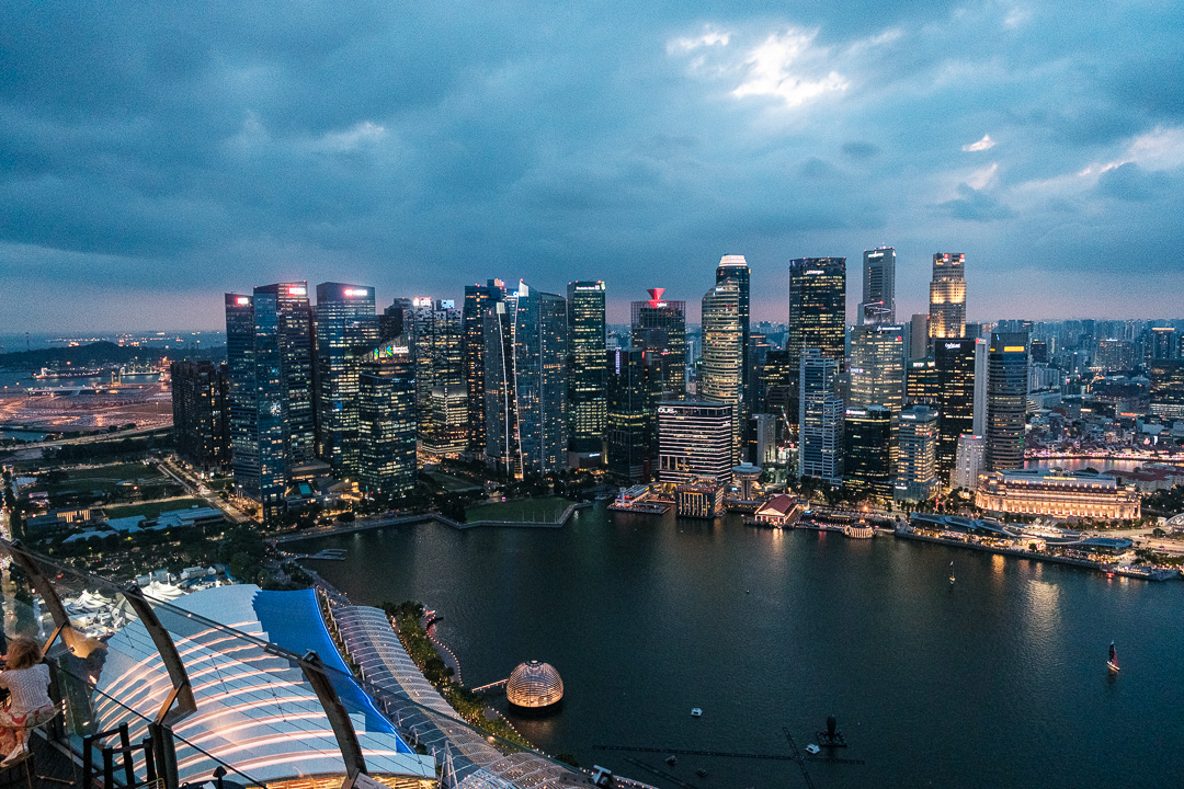 After exploring the gardens, we returned to the Marina Bay Sands Hotel and visited the viewing platform which provides some amazing views over the city: