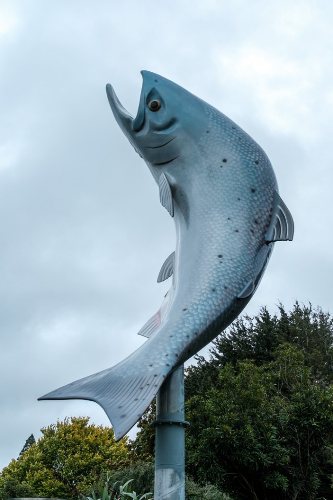 Rakaia’s emblem is the salmon, which is celebrated with a huge sculpture by the side of the road.