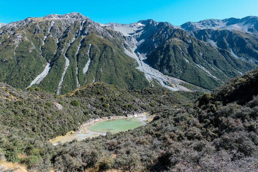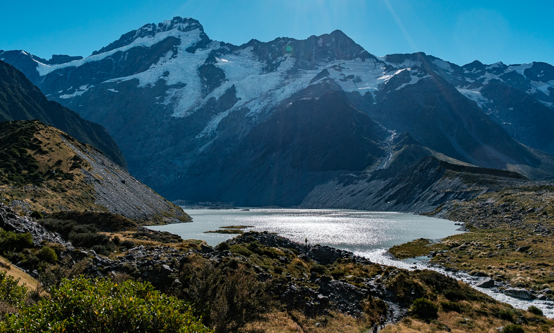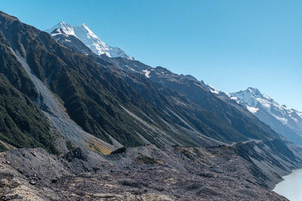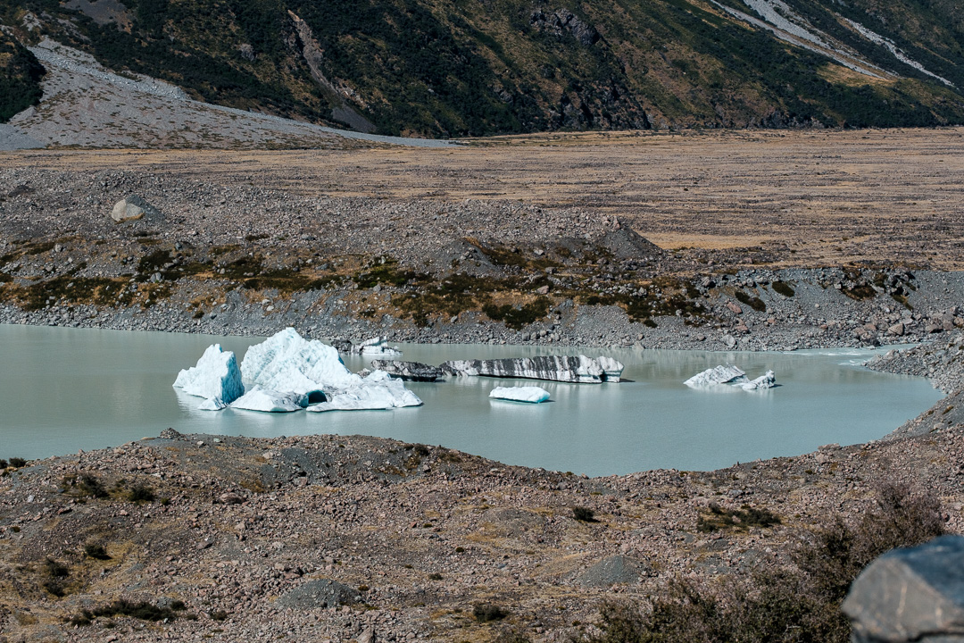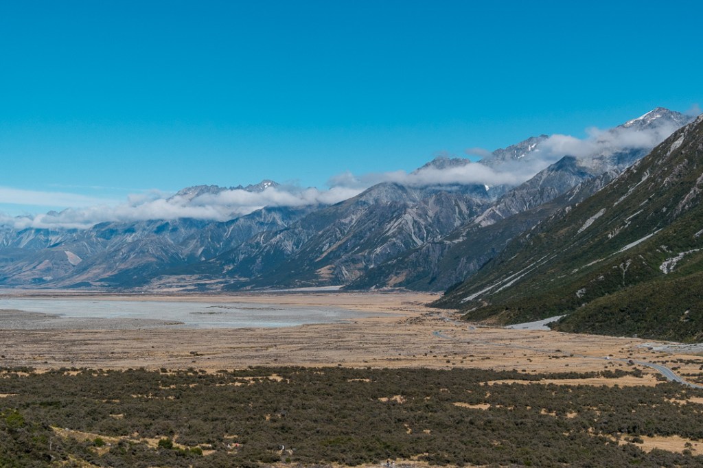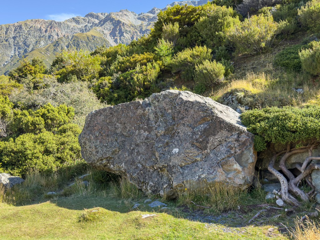 We walked along the Hooker Valley Track towards the first swing bridge and Lake Müller, passing the Alpine memorial along the way.