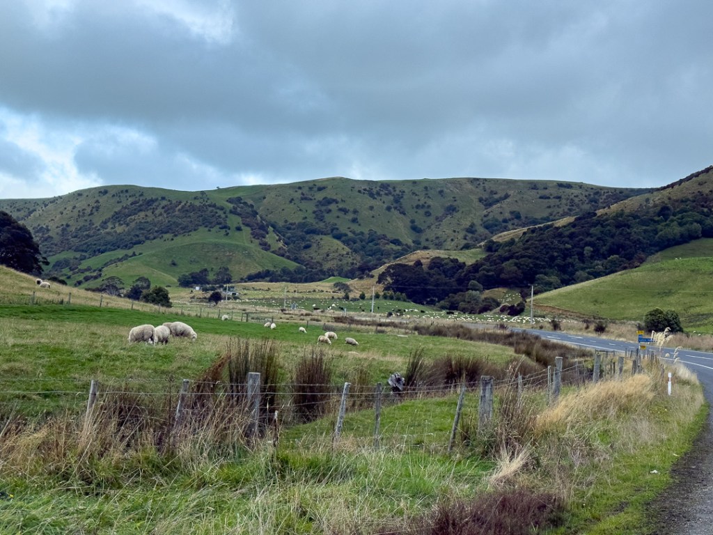 Leaving Dunedin and heading south, we stayed overnight at Thomas’s Catlins Lodge and Holiday Park, Owaka, which was quirky and interesting. It is an old converted hospital where we were able to park-up. Other guests were accommodated, hostel / self catering style, inside. The Catlins is an area of South East New Zealand which is characterised by lovely rolling hills, reminiscent of North Yorkshire, but without all the dry-stone walls and barns.