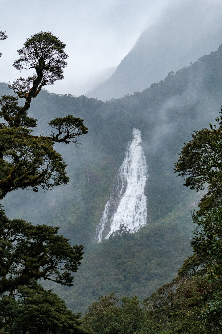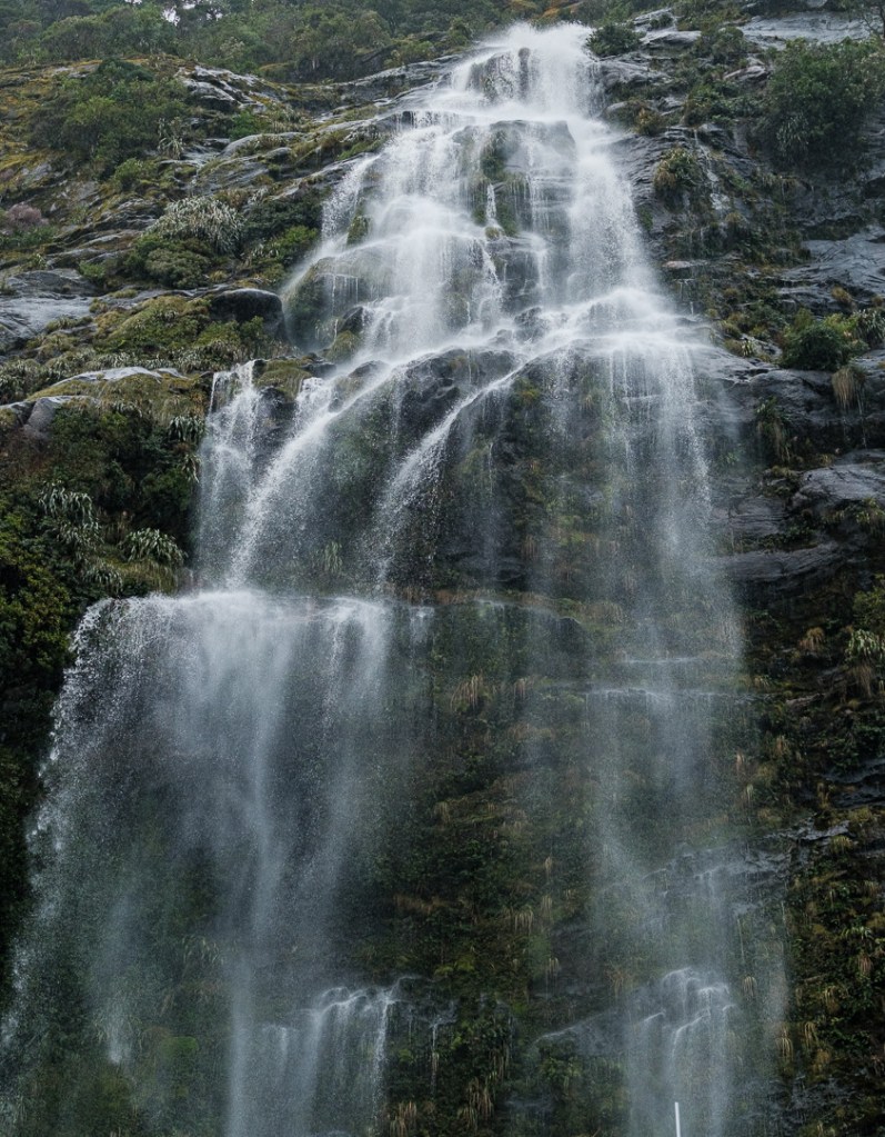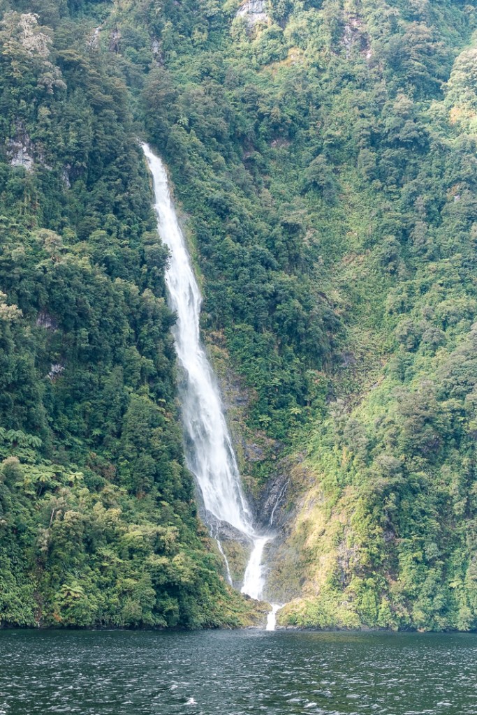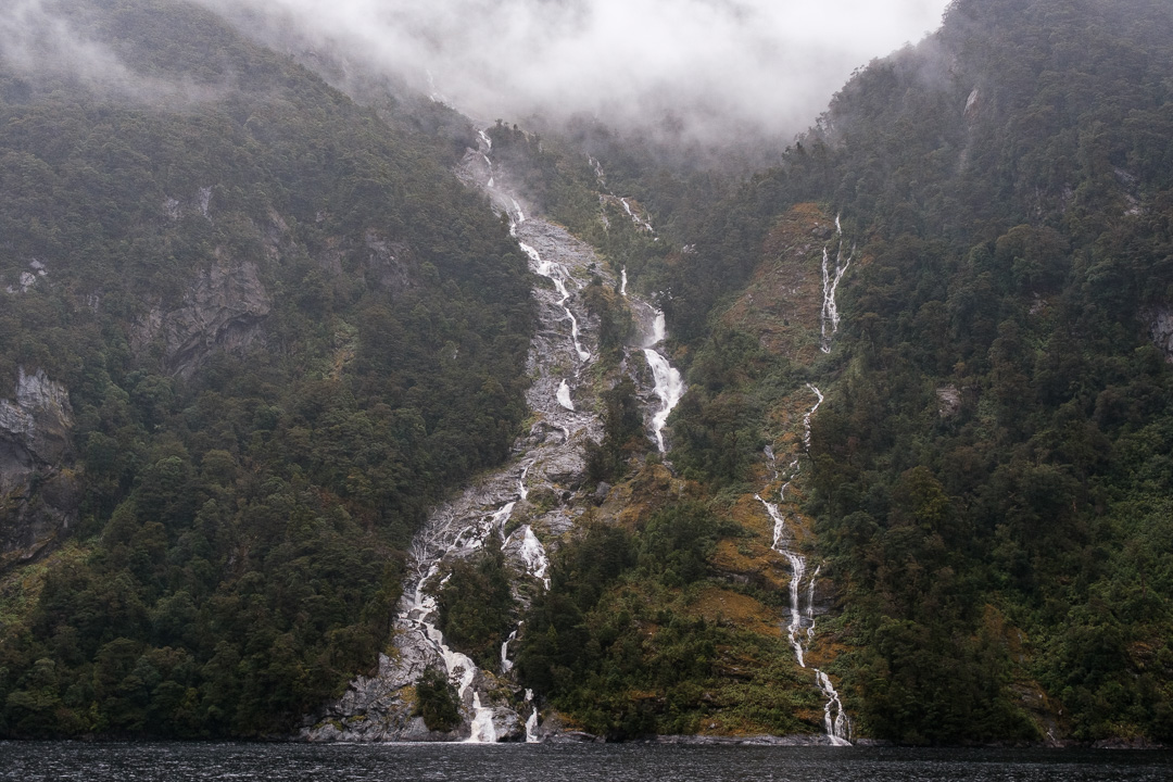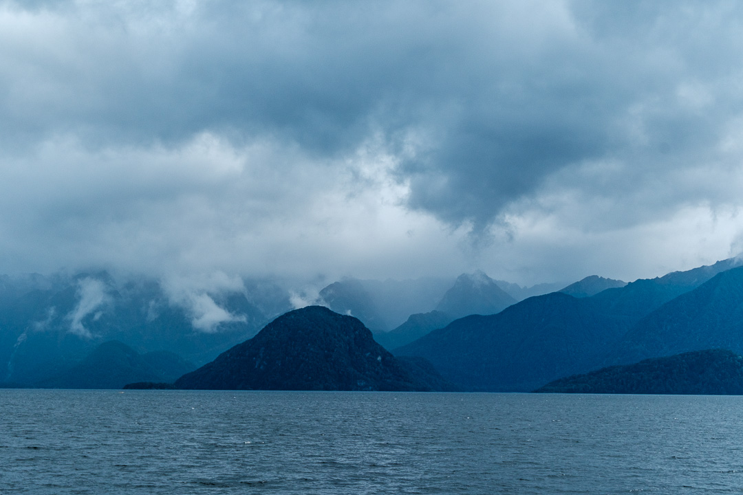 The larger passenger boat on Doubtful Sound then took us the length of the fjord. It was raining when we set off on the Sound, adding to the moody atmosphere: