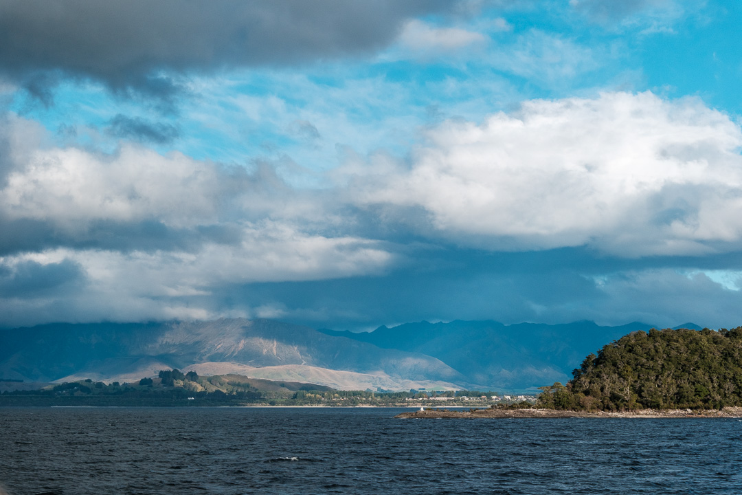 By the time we reached Lake Manapouri again, the sun was casting some interesting patterns on the nearby mountains.