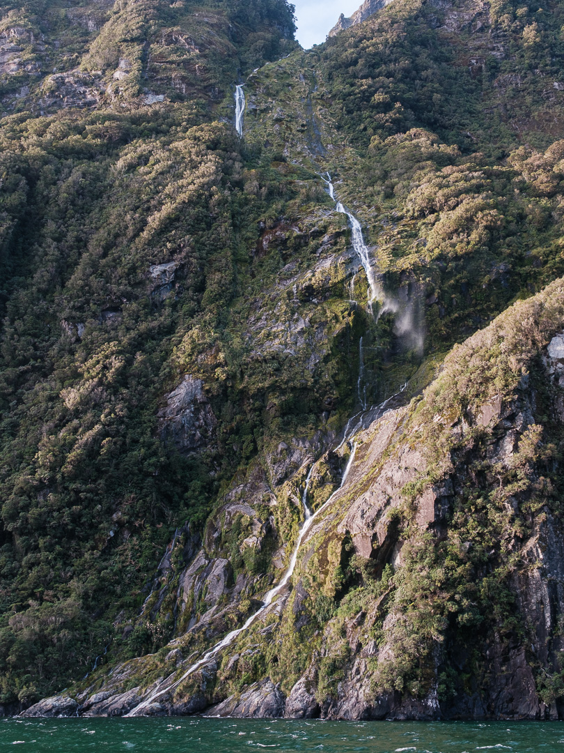 We loved Doubtful Sound, but Milford Sound, if anything, is more dramatic. The mountains on either side of the fjord drop almost vertically into the water and boats can get to within touching distance of the rock walls.